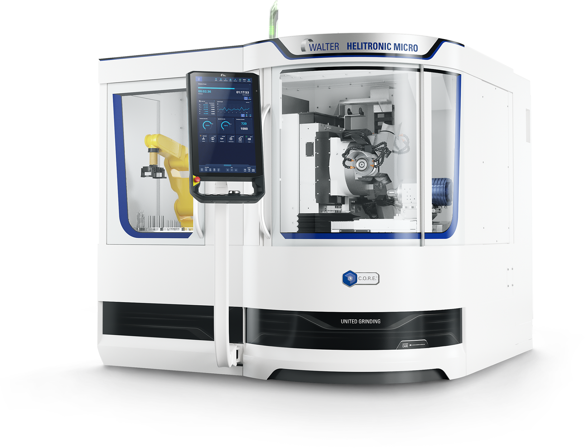 6軸數控機床針對加工微小刀具并配置有特殊設計的混凝土床身。所有軸均為直驅以實現高生產率和高精度。機器人裝載機系統。
