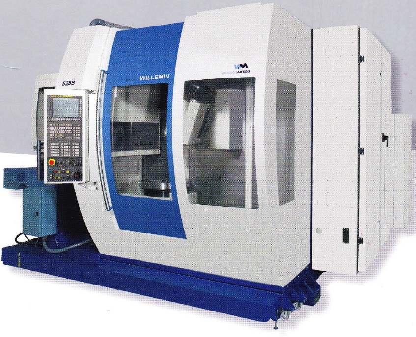 機床特征簡要說明(Introduction): 528S加工中心適合高精度零件加工,零件邊長尺寸不超過4OOmm,高精度直驅回轉分度工作臺及大容量刀庫(最多可達18O把)保證機床為柔性高效加工單元。機床結構緊湊設計,占地面積小。