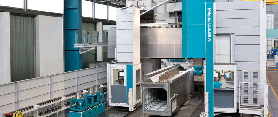 ●多種刀庫選項極大地提高了Vertiram龍門加工中心的生產效率:鏈式刀庫,安裝在立柱側面,容量為60到140個刀位;模塊化矩陣式刀庫,安裝在地面上,具有容量大、占地小的特點;落地矩陣式刀庫,配備機械手,可與X軸平行移動